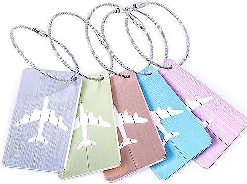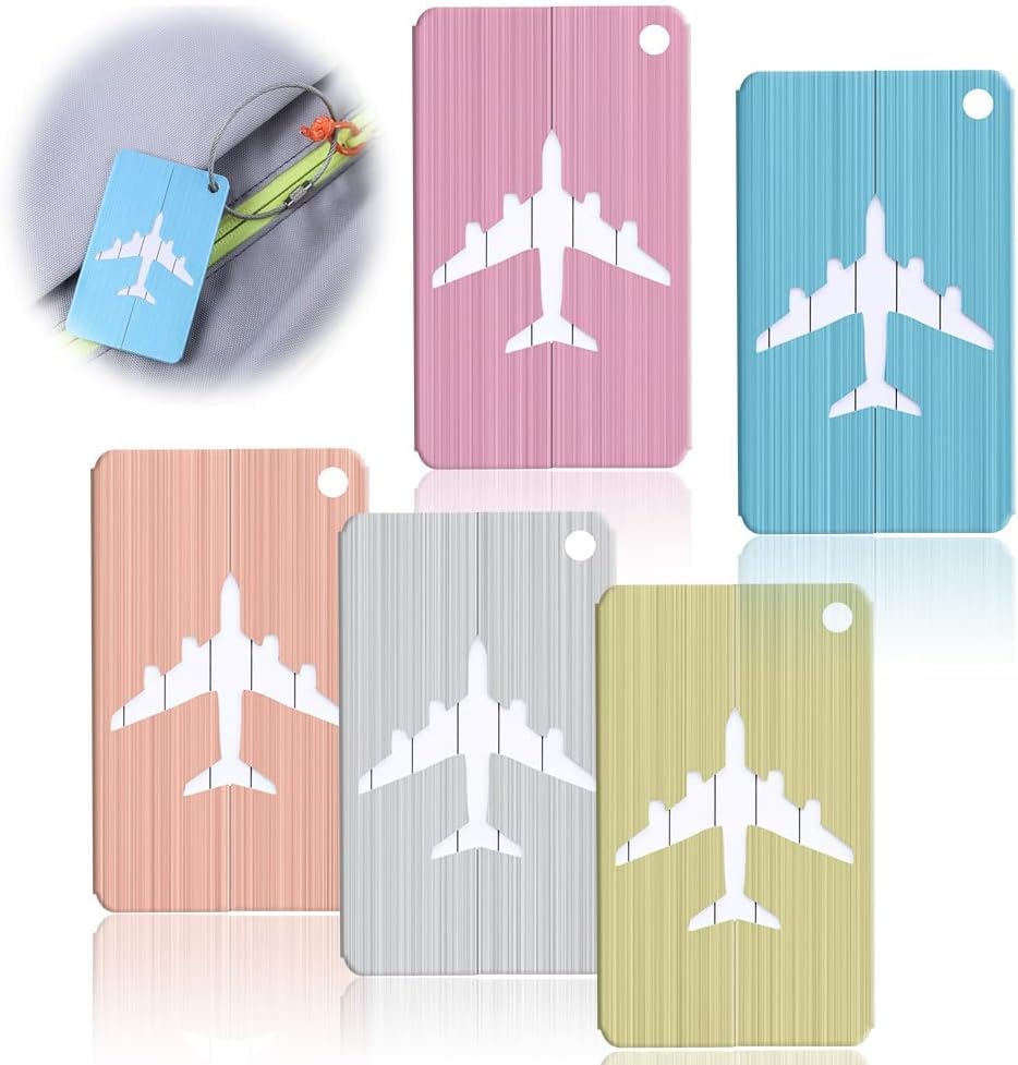 BSJIASHIWEI - مجموعة من 5 بطاقات معدنية الالومنيوم لشنط الامتعة وشنطة اليد والمدرسة والادوات والاسم والعنوان مع ورقة بطاقة معلومات وبطاقة مقاومة للماء وحلقة سلكية بي إس جي آياشيوي