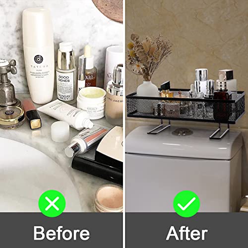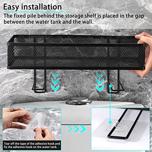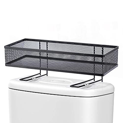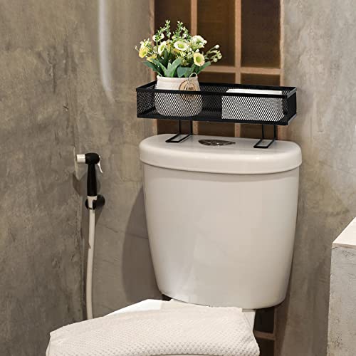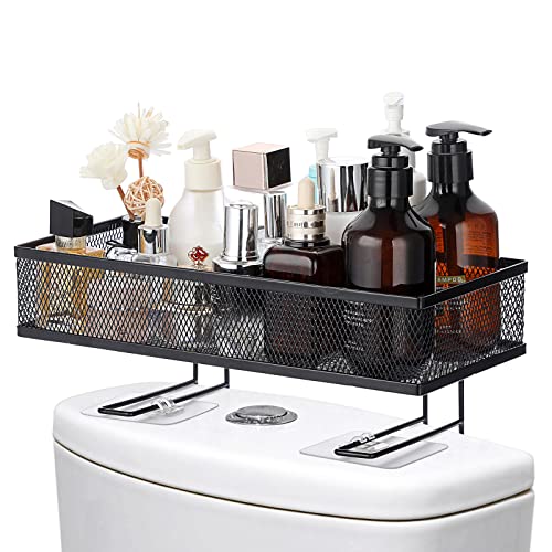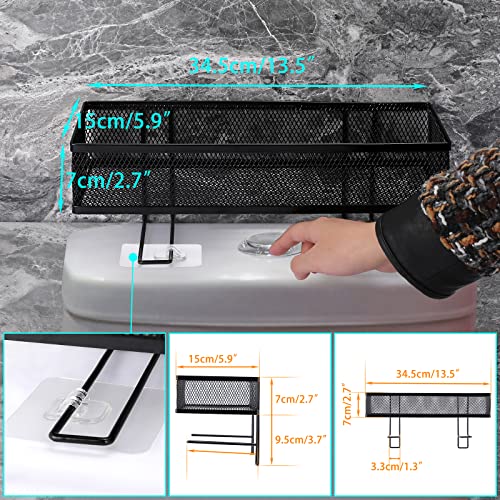BSTKEY - رف تخزين شبكي معدني فوق المرحاض خزان للحمام مع خطافين لاصقين منظم لوازم الاستحمام حامل ورق اسود .