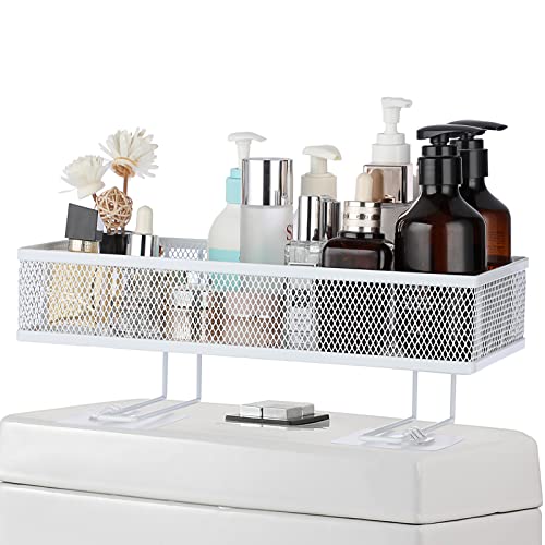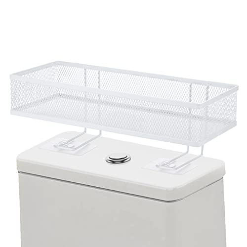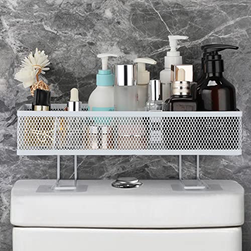 BSTKEY - رف تخزين شبكي معدني فوق المرحاض خزان للحمام مع خطافين لاصقين منظم لوازم الاستحمام حامل ورق ابيض .