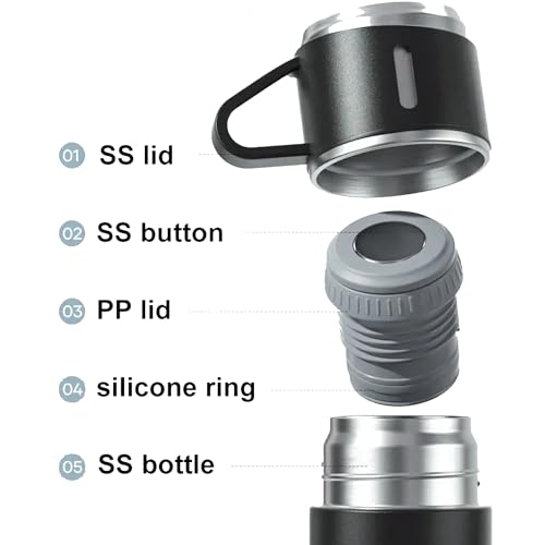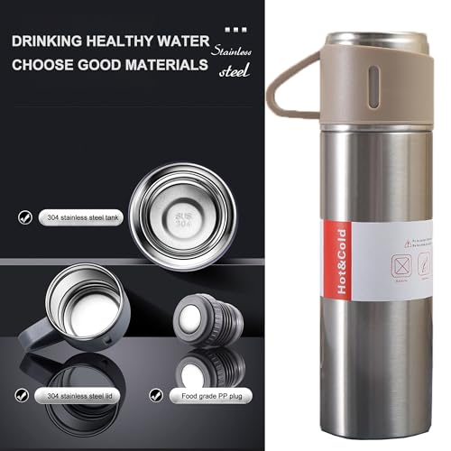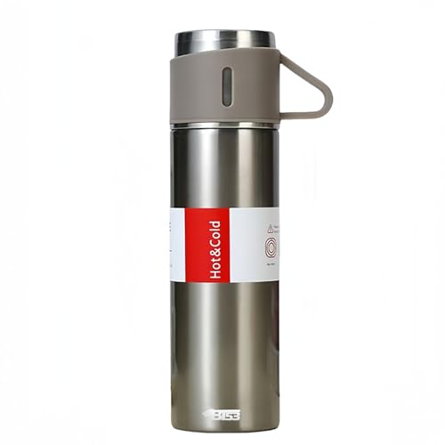 Spaceshoop - ترمس حراري من الفولاذ مقاوم للصدأ بي تي 53 للمشروبات الساخنة والباردة مع ثلاثة أكواب سعة 500 مل لون فضي