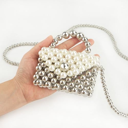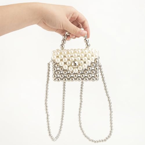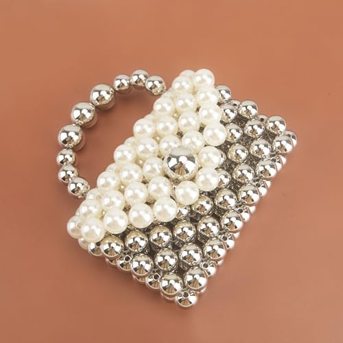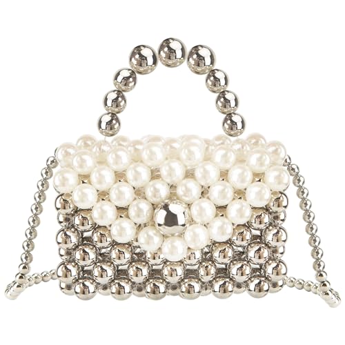BTAMUD - شنطة يد صغيرة مزينة باللؤلؤ للنساء من بي تي ايه ام يو دي بخرز لؤلؤي للبنات شنط مسائية مصنوعة يدويا للحفلات والولائم وحفلات الزفاف