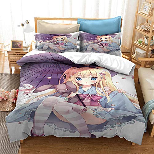 BTBDWOSW - طقم لحاف لسرير بطبعة فتاة انيمي ثلاثية الابعاد 135×200 سم - غطاء بسوستة + اكياس مخدة مايكروفايبر سهل العناية الاطفال والكبار سينجل دبل كينج من بي تي دي دبليو اوه اس دابليو® متعدد كارتون