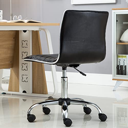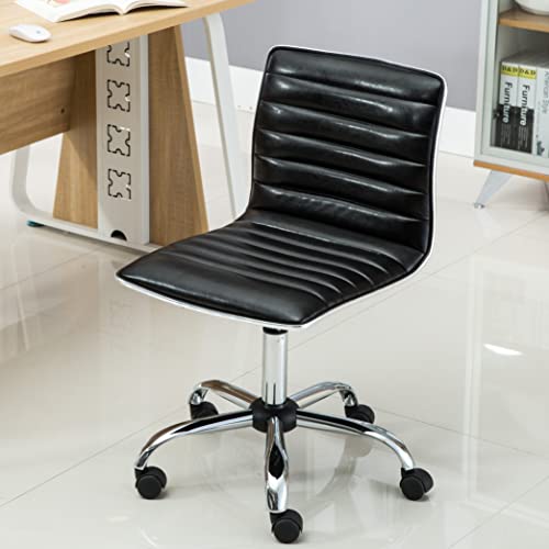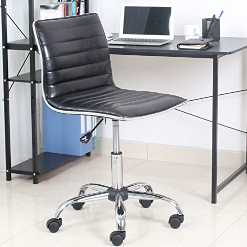 BTEXPERT - كرسي مكتب بظهر متوسط مضلع ومقعد ومسند مغلف بالجلد الناعم من بتكسبيرت، أسود (1)