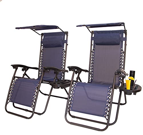BTEXPERT - كرسي زيرو جرافيتي للاسترخاء في الخارج وحمام السباحة والفناء والشاطئ والحديقة وحاملة للأكواب من بتكسبيرت CC5044BLU-2، قطعتين، أزرق مع شمسية، سبيكة صلب