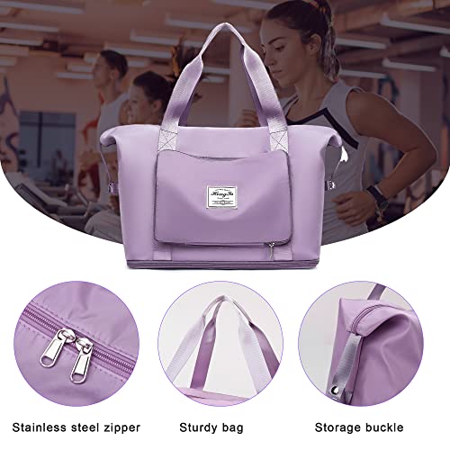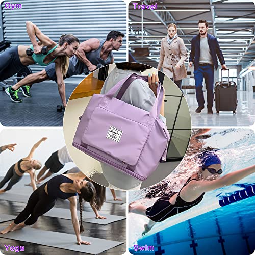 BTONGE - شنطة دافل لصالة الالعاب الرياضية مع جيب للأغراض المبللة تناسب السفر، قابلة للتوسيع والطي بسعة كبيرة لحمل الأمتعة وسهلة الحمل، شنطة توت كبيرة بحزام كتف لقضاء عطلة نهاية الأسبوع/ليلة واحدة من بيتونج,