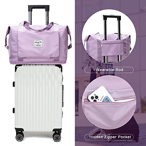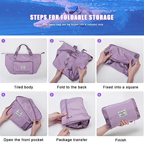 - 【قابلة للطي والحمل】- الحجم المطوي لحقيبة السفر مع حقيبة بعجلات هو فقط: 28 × 18 × 4 سم. تخزين صغير وصغير الحجم وقابل للطي، لن يشغل مساحة كبيرة للأمتعة. يمكن فتحها عند الحاجة، يمكنك بسهولة تحميل أدوات النظافة وحقائب مستحضرات التجميل والملابس والمناشف وزجاجة المياه وغيرها من الأشياء. يمكن استخدام تصميم المقبض المتين كحقيبة كتف أو وضع حقيبة السفر الخاصة بك على ذراع الأمتعة لجعل السفر سهلاً.