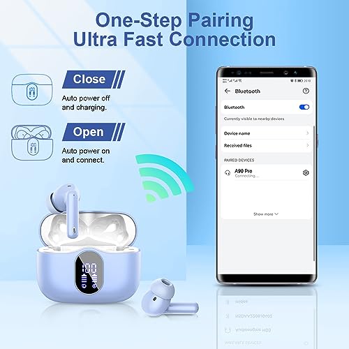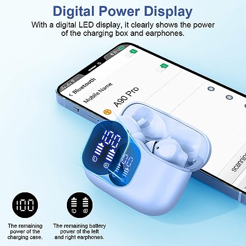 Btootos - سماعات بلوتوث داخل الأذن مزودة بـ 4 ميكروفونات وصوت ستيريو هاي فاي، سماعات بلوتوث 5.3 بتشغيل يصل إلى 36 ساعة مع شاشة ال اي دي مقاومة للماء بمعيار IP7 وتدعم الشحن عبر USB نوع سي مع ميزة التحكم باللمس