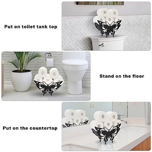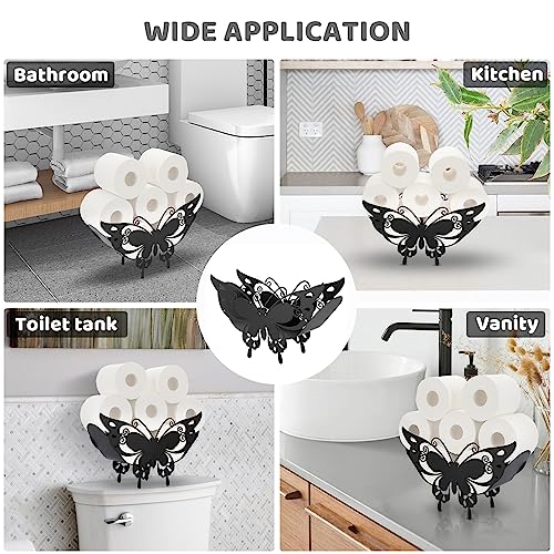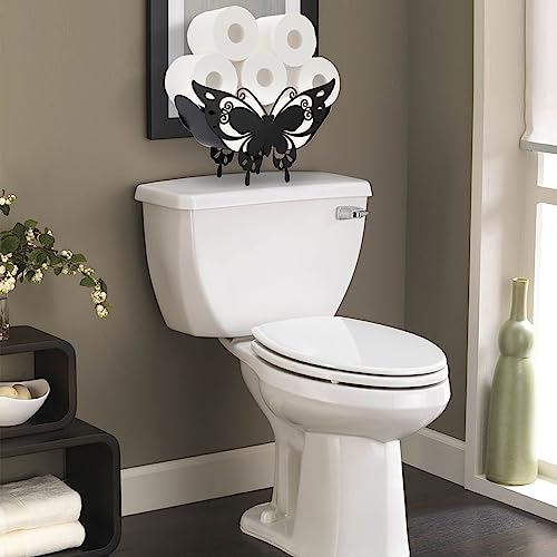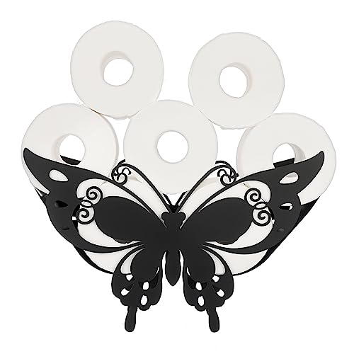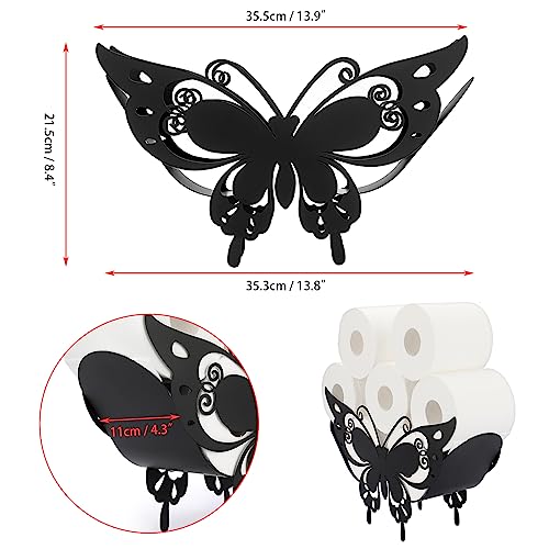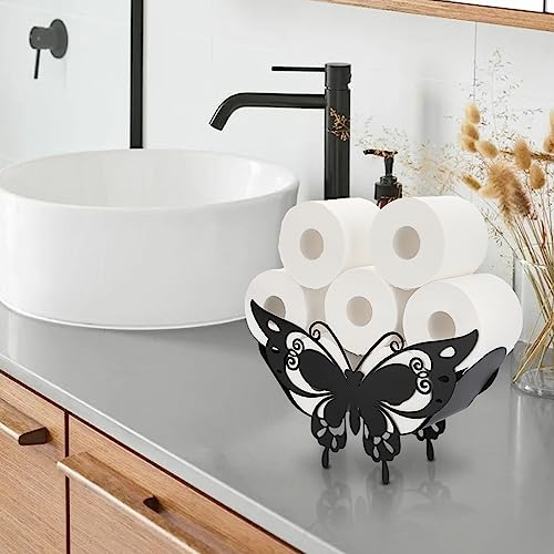 BTSKY - BT سكاي حامل ورق تواليت معدني - حامل مناديل تواليت بنمط حيوان اسود غير لامع، حاوية تخزين قائمة بذاتها للحمام والمنزل والمطبخ (فراشة ذيل بشق)