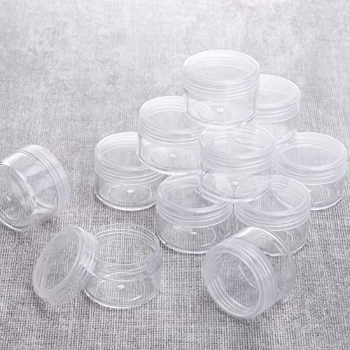BTYMS - مجموعة حافظات مستحضرات التجميل قابلة لاعادة الملء مع اغطية 15 جرام من 100 قطعة، برطمانات بلاستيكية شفافة لحفظ العينات والمكياج ومنتجات التجميل