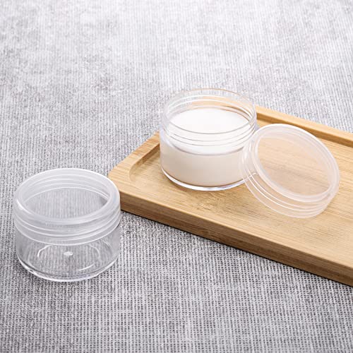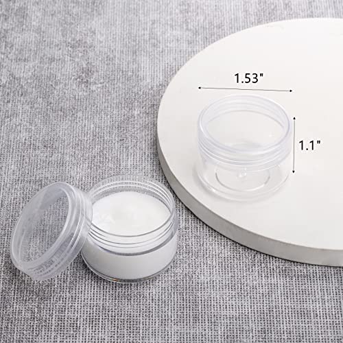 - 100 قطعة من برطمان العينة مع غطاء؛ السعة: 15 جرام/ 0.5 اونصة مثالية لتخزين اللوشن ومرطبات الشفاه ومستحضرات تجانس البشرة والكريمات ومسحوق الاكريليك وغيرها من أدوات التجميل.