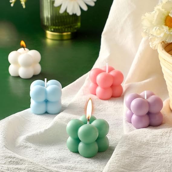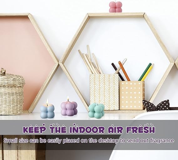 - تصميم فقاعات فريد: شموع مكعبات بتصميم فقاعات ثلاثي الأبعاد جذاب يضيف لمسة جمالية عصرية لديكور المنزل وغرفة النوم