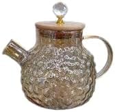 Generic - ابريق شاي زجاجي حراري بتصميم فقاعات، غطاء خشبي، لون عسلي
