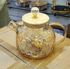 - تصميم مميز: إبريق شاي زجاجي بنمط الفقاعات الجذاب مع غطاء خشبي أنيق وتشطيب باللون العسلي