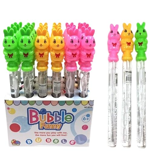 - التصميم: عصا فقاعات رائعة على شكل أرنب بألوان خضراء وصفراء ووردية نابضة بالحياة، طول كل منها 35.5 سم مع تفاصيل فيونكة مزخرفة