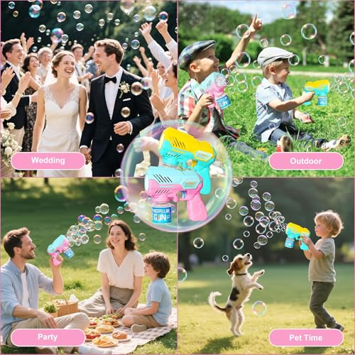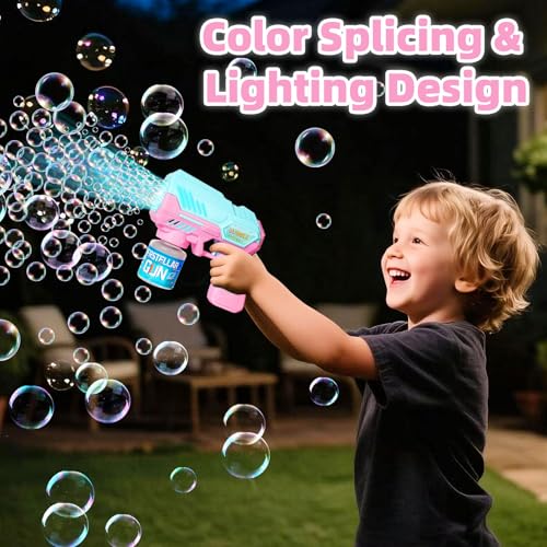 - مسدس فقاعات للأطفال: مسدس الفقاعات مجهز بمصابيح LED ولا يصدر موسيقى عالية. يمكن لآلة الفقاعات هذه للأطفال من سن 3 إلى 12 سنة إنتاج أكثر من 10000 فقاعة في الدقيقة. تصنع آلة الفقاعات شلالات فقاعات رائعة تجعل الأطفال مستمتعين لساعات.