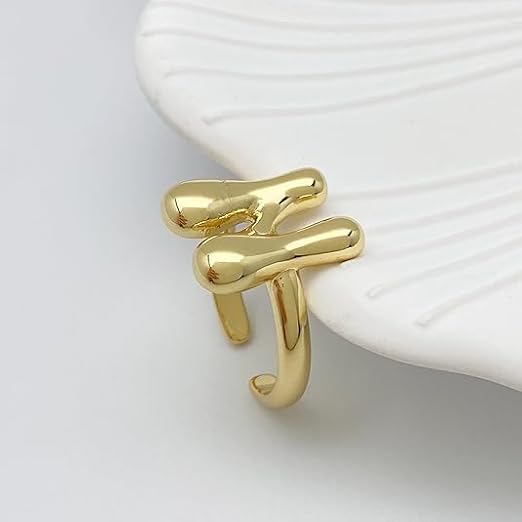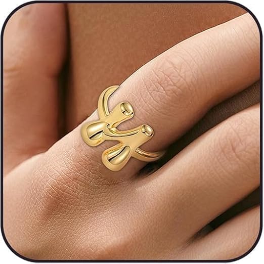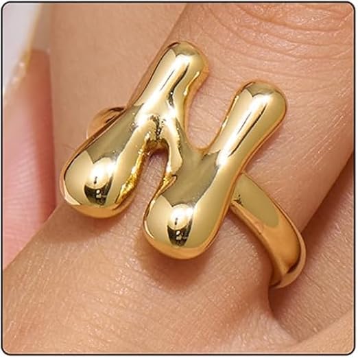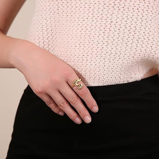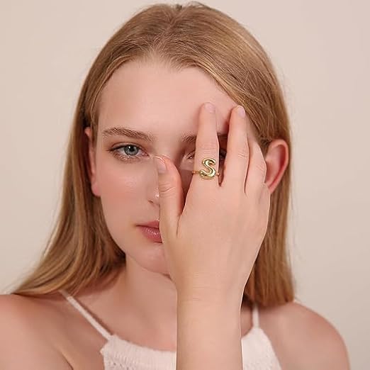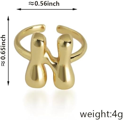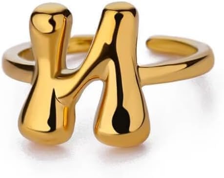 Generic - خاتم بابل بتصميم الحرف الاول من الاسم للنساء، بتصميم بالون انيق ستانلس ستيل مطلي بالذهب عيار 18 قيراط بتصميم الحروف الابجدية المفتوحة من A-Z قابل للتعديل،