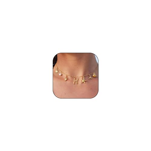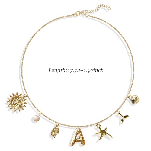 YANCHUN - قلادة بدلاية على شكل حرف فقاعة للنساء بدلاية على شكل صدف، قلادة ذهبية بدلاية على شكل حرف اولي، قلادة بوهو للصيف ونجم البحر ولؤلؤ البحر للبنات والنساء