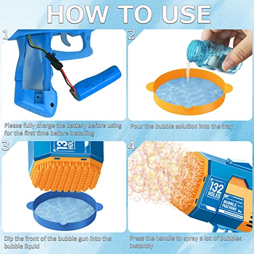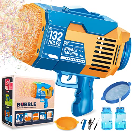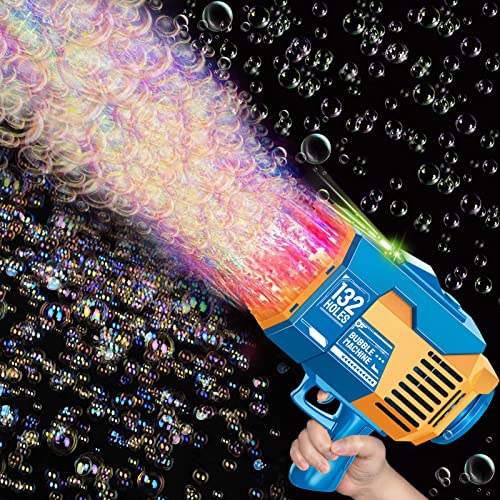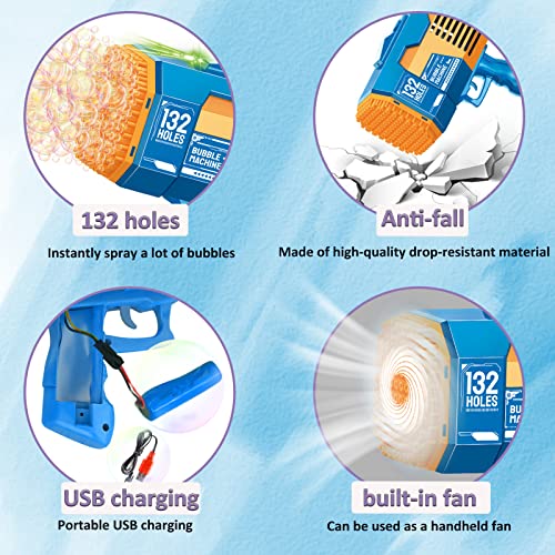 GUAHKUN - مسدس فقاعات بـ 132 ثقبًا، آلة مع أضواء ومحلول فقاعات، لعبة صيفية للأطفال الصغار والأطفال والكبار، قاذف فقاعات لحفلات الزفاف وأعياد الميلاد في الهواء الطلق والداخل