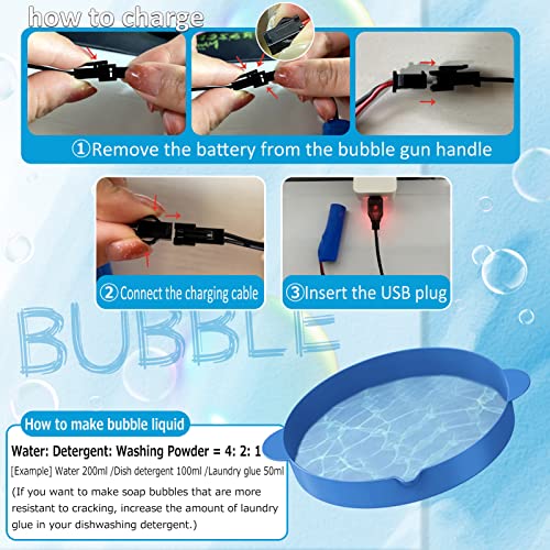 - 🚀【نصائح ودية】① بعد استلام المنتج، يجب شحنه قبل 4 ساعات على الأقل من الاستخدام الأول. ② يرجى استخدام محلول فقاعات خاص وليس الصابون الذي تصنعه بنفسك، يمكن أن يصنع المحلول الكثير من الفقاعات، وهو أمر مهم جدًا لأن الصابون ليس له نفس التأثير. ③ لا تلصق الكثير من محلول الفقاعات، فهو يمنع التصاق الفقاعات معًا. إذا كانت الفقاعات تلتصق ببعضها البعض، فإن مسح منفذ الفقاعات بقطعة قماش نظيفة يمكن أن يحل المشكلة.