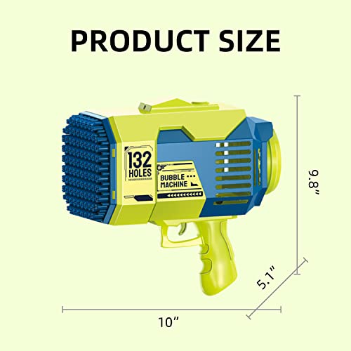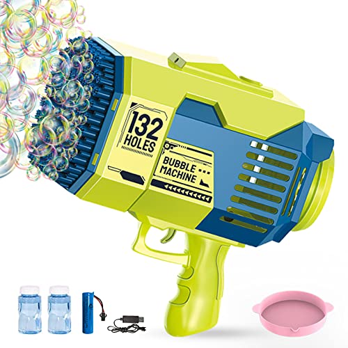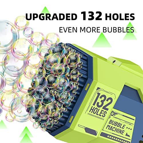 Generic - مسدس فقاعات بازوكا مطور بـ 132 فتحة مع زجاجتين من محلول إعادة تعبئة الفقاعات، هدية حفلات الفقاعات، لعبة صيفية، أخضر