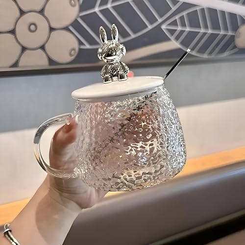 Generic - كوب زجاجي بتصميم فقاعات مع ملعقة وغطاء على شكل دب لطيف، مثالي للحليب والعصير والشوكولاتة والقهوة المثلجة، 300 ملليلتر (1)