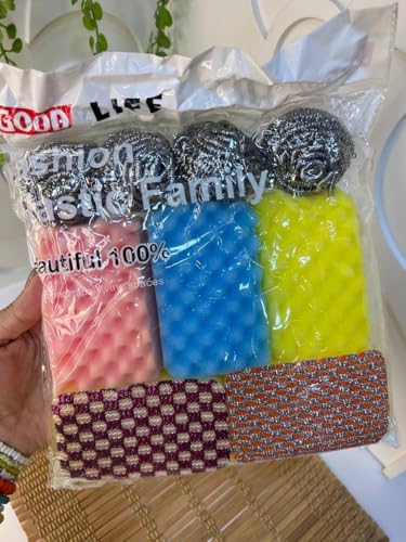 Generic - باكيت نظافة 9×1 – سلك ستانلس مقاوم للصدأ + أنواع مختلفة من الإسفنج – طقم تنظيف شامل متعدد الاستخدام – عملي وجودة عالية
