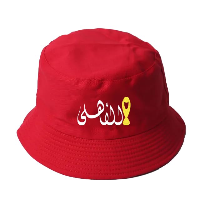 Generic - كاب عميق أحمر قابل للطي للجنسين مزين بكلمة الأهلي ورسمة الكأس طاقية واقية من الشمس قبعة بحافة للتخييم في الهواء الطلق والمشي لمسافات طويلة والسفر والصيد والشاطئ