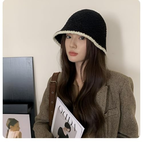 Generic - قبعة باكيت - قبعة كروشيه من الصوف الدافئ للنساء الانيقة والشتاء، اكسسوار انيق ومريح لازياء الطقس البارد