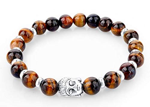 Generic - سوار بوذا بانجل وعين النمر خرزة الفضية للرجال والنساء صناعة يدوية