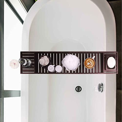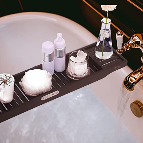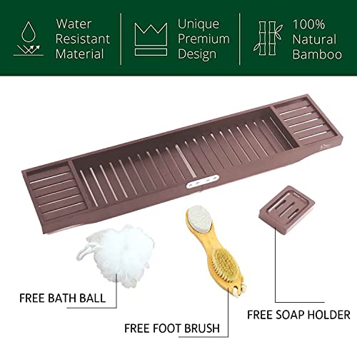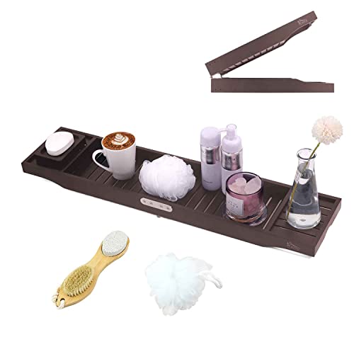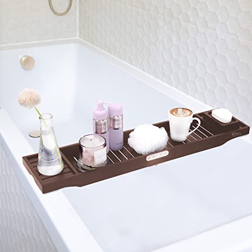 BUDFAY - صينية حوض استحمام فاخرة قابلة للطي من البامبو، طاولة لحوض الاستحمام مع حوامل لكؤوس الشراب وأجهزة التابلت والموبايلات والكتب من بودفاي، لون بني