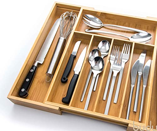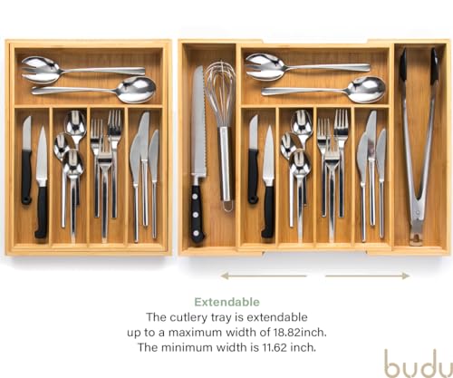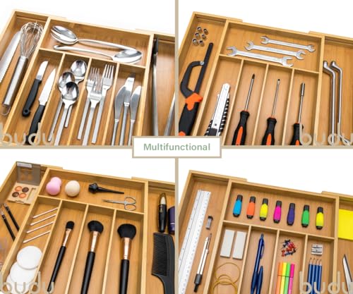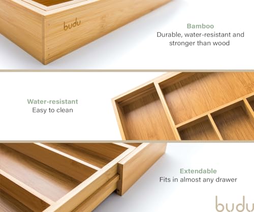 budu - صينية أدوات مائدة من الخيزران قابلة للتعديل 7 مقصورات من بودو، لون بني، مقاس 38 سم