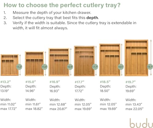 • علبة أدوات مائدة مثالية دائمًا: جميع صواني أدوات المائدة الخاصة بنا قابلة للتوسيع في العرض. ما عليك سوى اختيار صينية أدوات المائدة التي تناسب عمق الدرج. ثم حرك صينية أدوات المائدة في العرض بحيث تتناسب تمامًا مع الدرج.