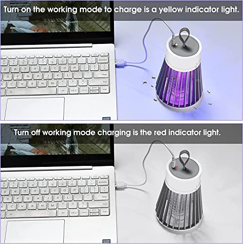 Generic - صاعق حشرات قابل لإعادة الشحن وقتل البعوض والذباب في الأماكن المغلقة مع حلقة تعليق، مصباح كهربائي محمول لقتل البعوض بمنفذ USB وإضاءة ليد، مصيدة بعوض للمنزل وغرفة النوم والتخييم في الهواء الطلق