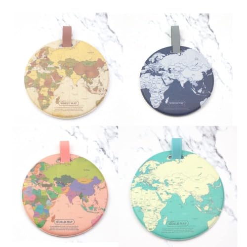 - 【تشمل المنتجات】- مجموعة واحدة من بطاقات الأمتعة مع خريطة العالم في 4 ألوان: أزرق انديجو، رترو، ملون، أخضر مينت.