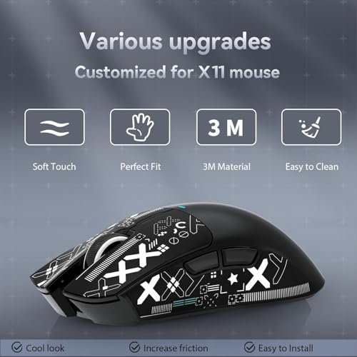 - 【قابل للتخصيص】تم تخصيص شريط الإمساك المضاد للانزلاق هذا لماوس الألعاب اللاسلكي الخفيف للغاية X11. يمكنك اختيار ما إذا كنت تريد اللصق أم لا للحصول على أنماط مختلفة.