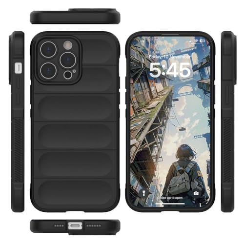 Generic - جراب من السيليكون ببطانة المايكروفايبر ممتص للصدمات بواقي البولي يوريثين المقاوم للحرارة مع حماية للكاميرا لموبايل ابل ايفون 15 برو ماكس 6.7 بوصة (بلون أسود) سيليكون الحراري