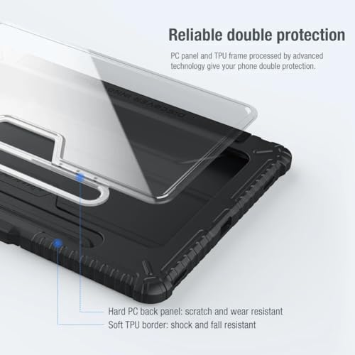 Nillkin - جراب من جلد صناعي حماية سمارت من الجلد بمسند و متحرك للكاميرا واطار مضاد للصدمات واستيقاظ-نوم اوتوماتيكية مزود بحامل للقلم متوافق مع سامسونج جالاكسي تاب S8 بلس-S8 بلس 5G 12.4 بوصة من نيلكين، اسود
