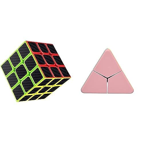 Generic - مجموعة مكعب سرعة ماستري 3×3 من الياف الكربون + مكعب سحري بلاستيك بتصميم مثلث للاطفال - متعدد الالوان، للبالغين والأطفال الكبار والأطفال الصغار