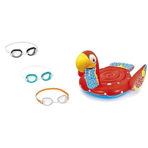 Bestway - طقم نظارات سباحة+جزيرة حفلات 5 متر قابلة للنفخ لست أشخاص بتصميم ببغاء عملاق من بيست واي