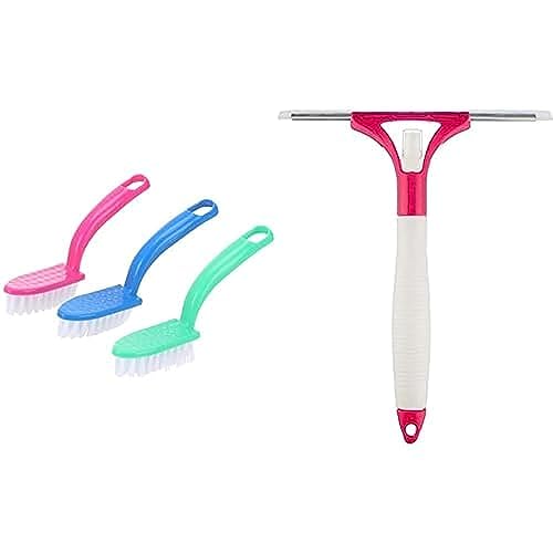 Generic - مجموعة فرش تنظيف متعددة الأغراض - عبوة من 3 قطع + مساحة زجاج بلاستيكية كبيرة ببخاخ - ألوان متنوعة