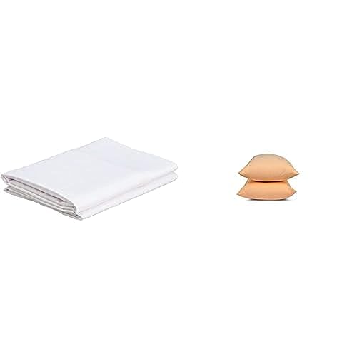 Snooze - مجموعة اكياس مخدات، قطعتين، 50 × 70 سم، لون ابيض سادة + طقم اكياس مخدات قطن هوم اوف لينين، مقاس 50 × 70 سم، لون خوخي
