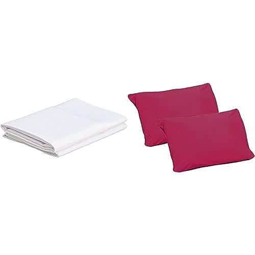 Snooze - مجموعة مكونة من اكياس مخدات من قطعتين، مقاس 50 × 70 سم، لون ابيض سادة، وطقم اكياس مخدات من سنوز، قطعتين، مقاس 50 × 70 سم، لون ميكسيكن بينك