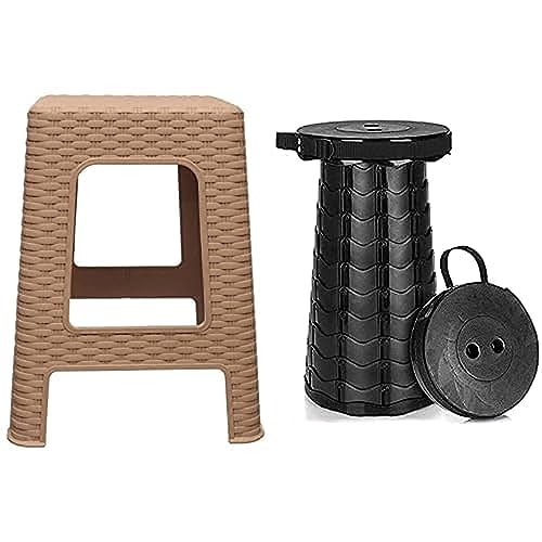 Generic - مجموعة مكونة من كرسي بلاستيكي باللون البيج + مقعد تلسكوبي بلاستيكي قابل للسحب من رويشينغ (136 كجم)
