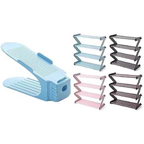 Generic - طقم منظم أحذية أزرق 10 قطع + جزامة 4 أدوار متعددة الألوان