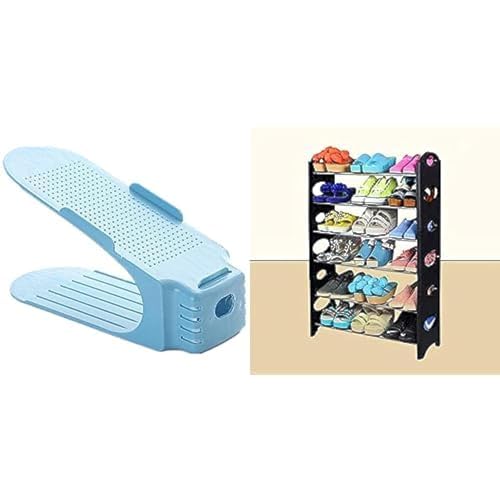 Generic - منظمات الأحذية 10 قطع + رف منظم أحذية (جزامة) منزلي مبتكر - ست طبقات، أزرق