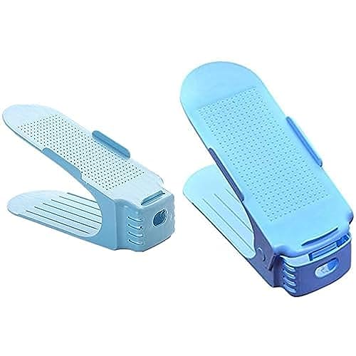 Generic - طقم منظم أحذية أزرق 10 قطع + منظم أحذية قابل للتعديل متين من البلاستيك بطبقتين موفر للمساحة للجزامة والدولاب أزرق