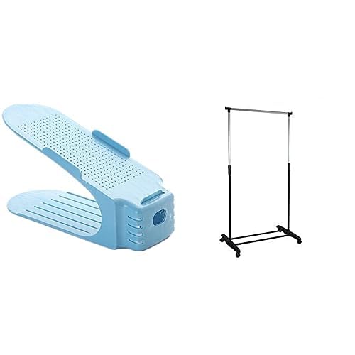 Generic - مجموعة من 10 قطع من منظم الاحذية باللون الازرق + رف ملابس مفرد hg21b