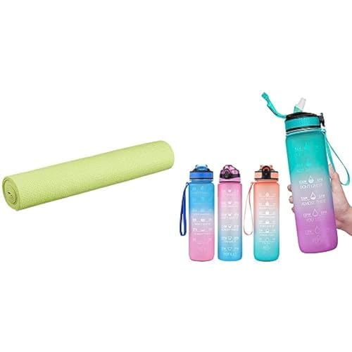 Generic - سجادة لتمارين اليوجا زجاجة مياه تحفيزية بمؤشر للوقت وشفاطة من سيليريتي سعة 1 لتر خالية مادة التريتان وبيسفينول أ قابلة لإعادة الاستخدام للجيم والمكتب والتمارين الرياضية - فوريست جرين مطاط