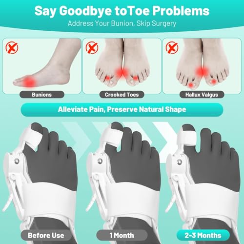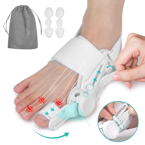 Azonee - مصحح ورم إبهام القدم مع وسادة سيليكون للنساء والرجال، أداة تصحيح إبهام القدم الكبير بزر إغلاق بالضغط مطور مع فاصل أصابع القدم الكبيرة، جبيرة ورم إبهام للقدم اليسرى واليمنى