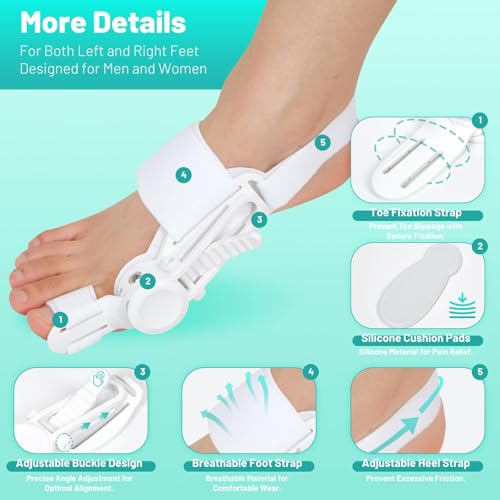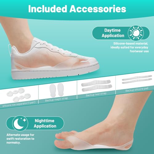 - ✅【عناية يومية ودعم ليلي】تتضمن هذه المجموعة المختارة بعناية المكونة من 5 قطع دعمًا شاملًا نهارًا وليلًا: مصحح إبهام القدم (قطعة واحدة)، داعم داخل الحذاء للاستخدام اليومي مع فواصل أصابع القدم من السيليكون (زوج واحد)، حزام إصبع القدم رياضي من مادة احترافية (قطعة واحدة)، وحزام تصحيح احتياطي (قطعة واحدة).